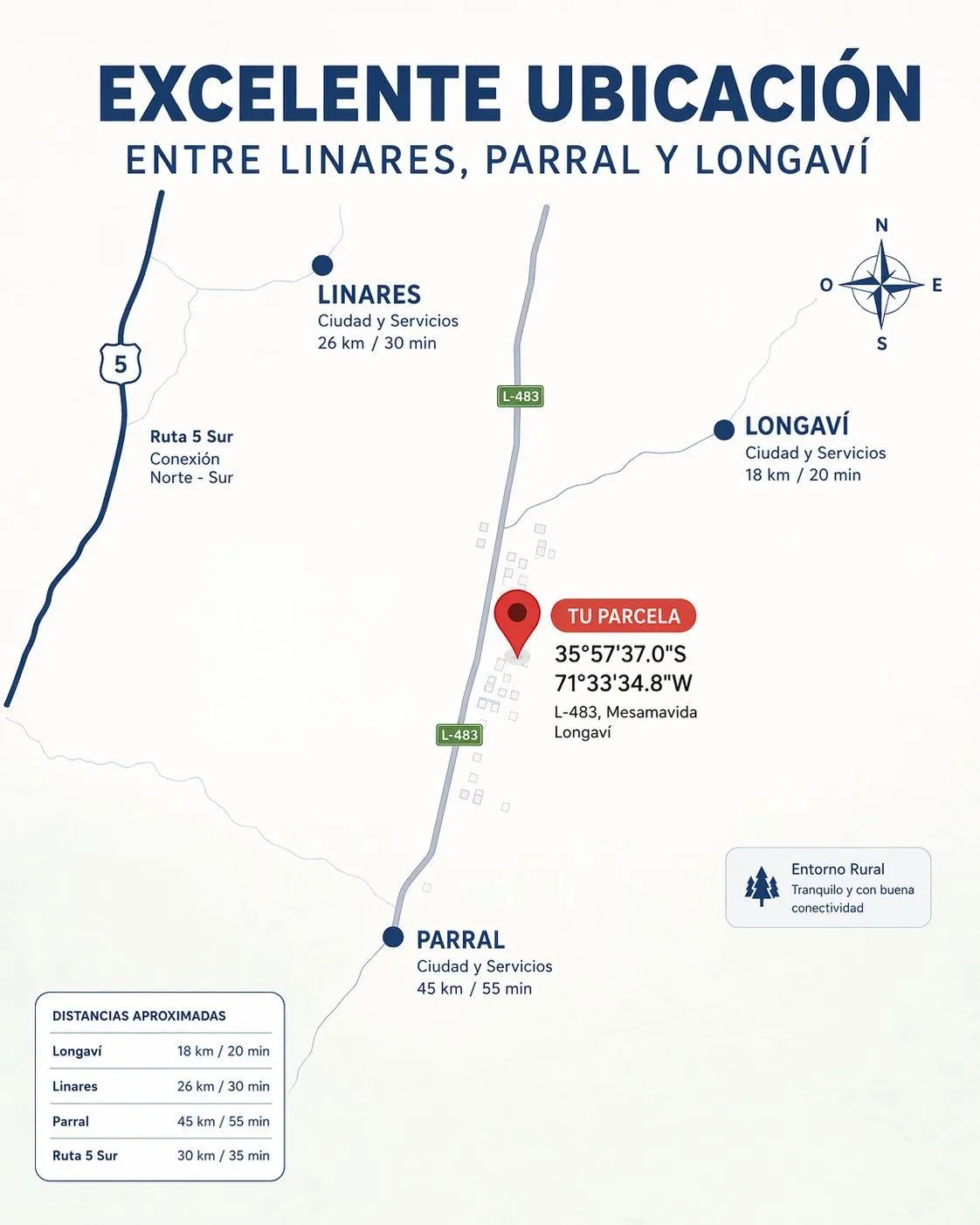 $20.400.000 por ½ hectárea con Rol SII propio. Precio de oportunidad disponible solo para las primeras ventas. Valor de mercado: sobre $35 millones.